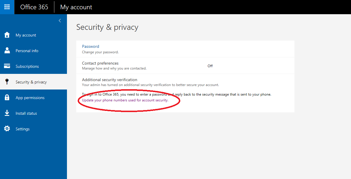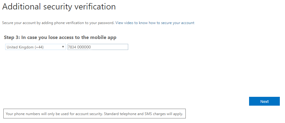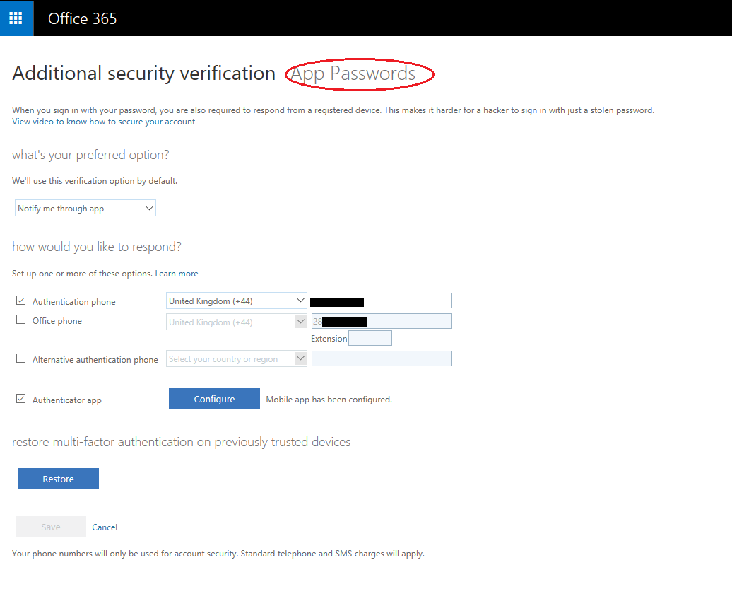 You should see a screen similar to the one below, detailing your telephone numbers and the Authenticator App which you have already setup