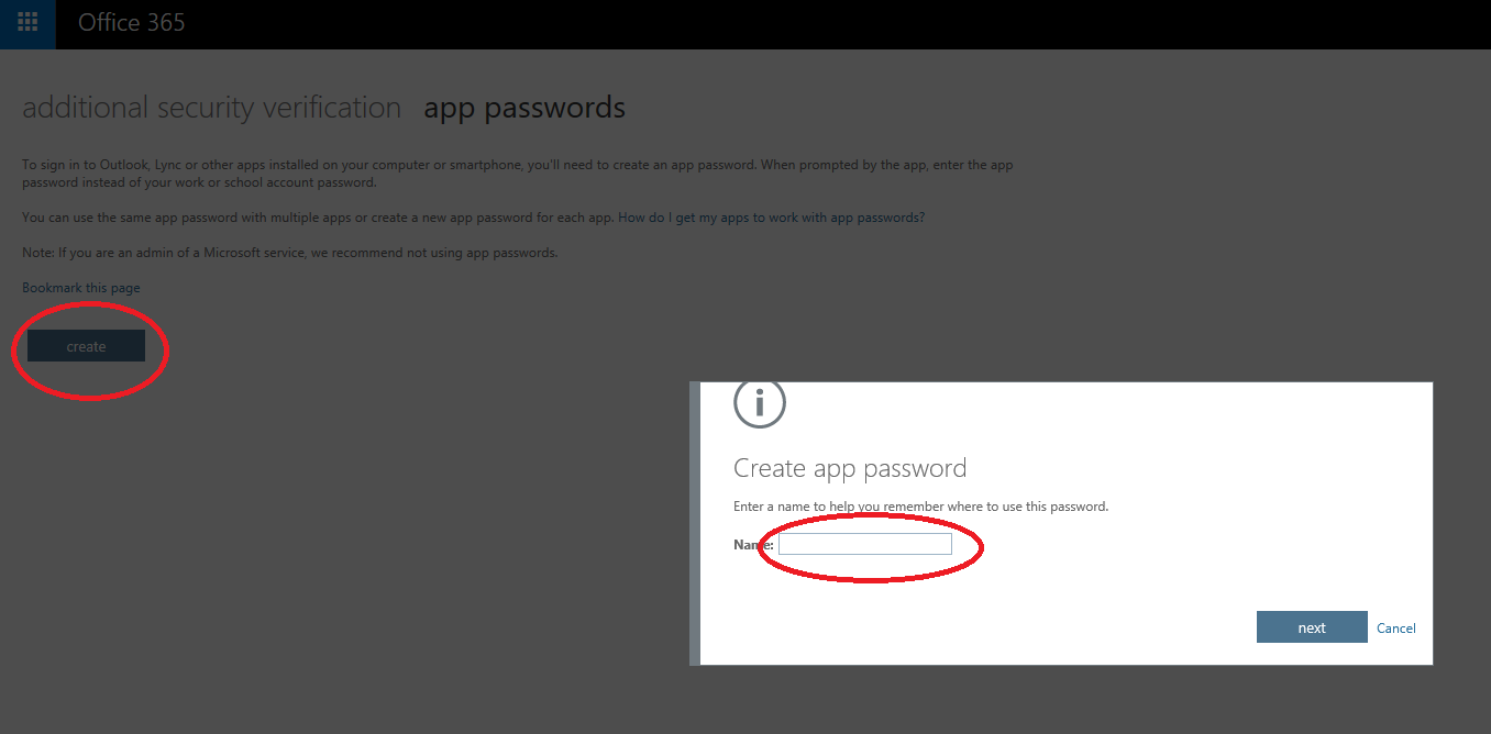 Choose a name for your App Password - We suggest entering the name of the app your going to use this password in