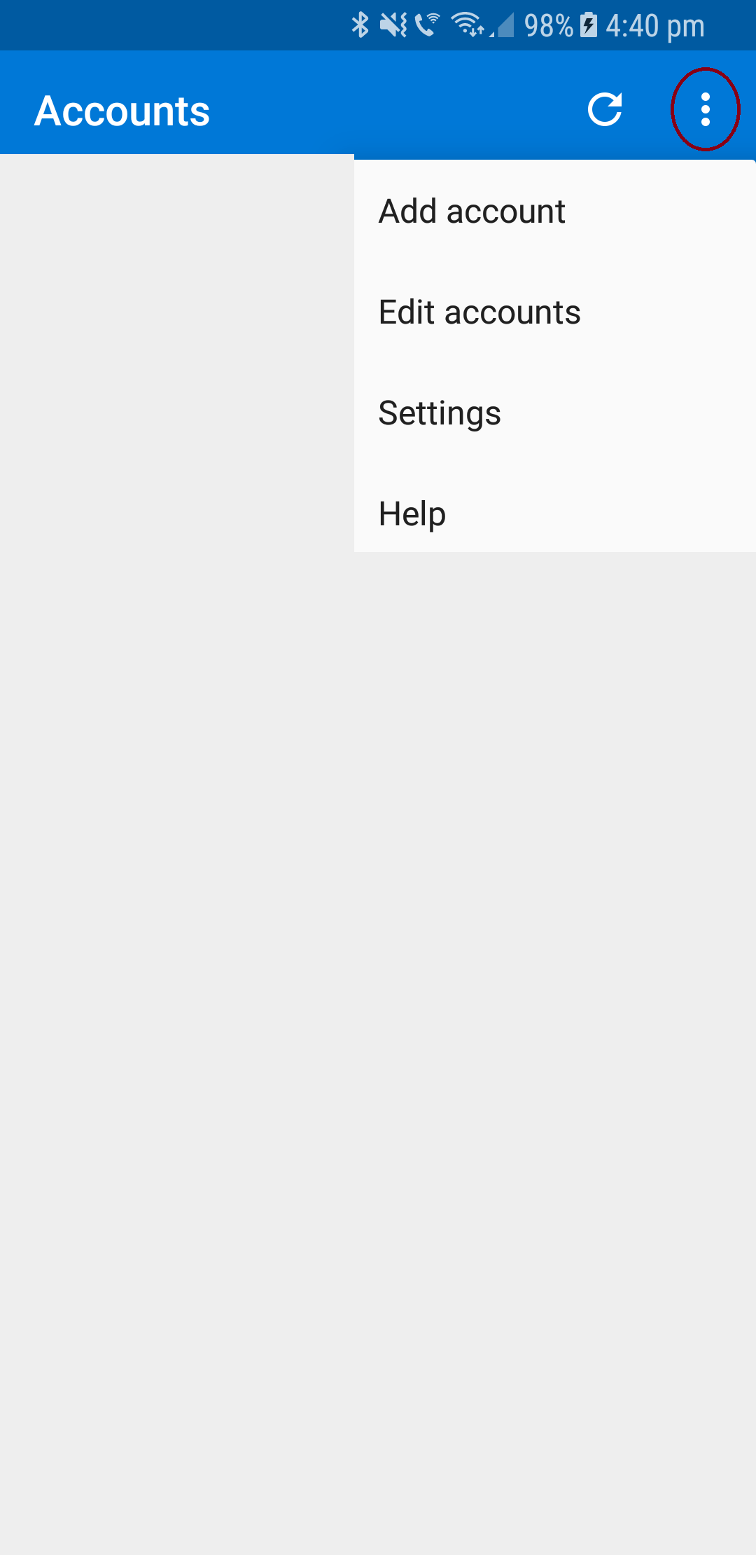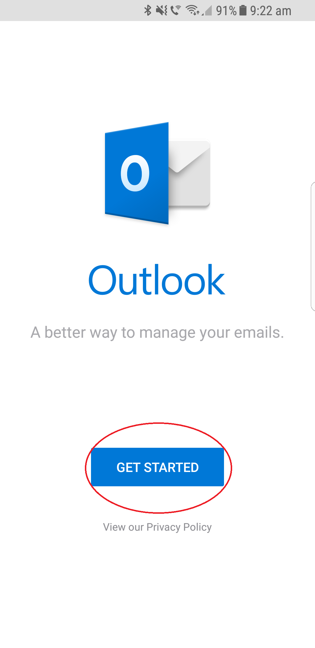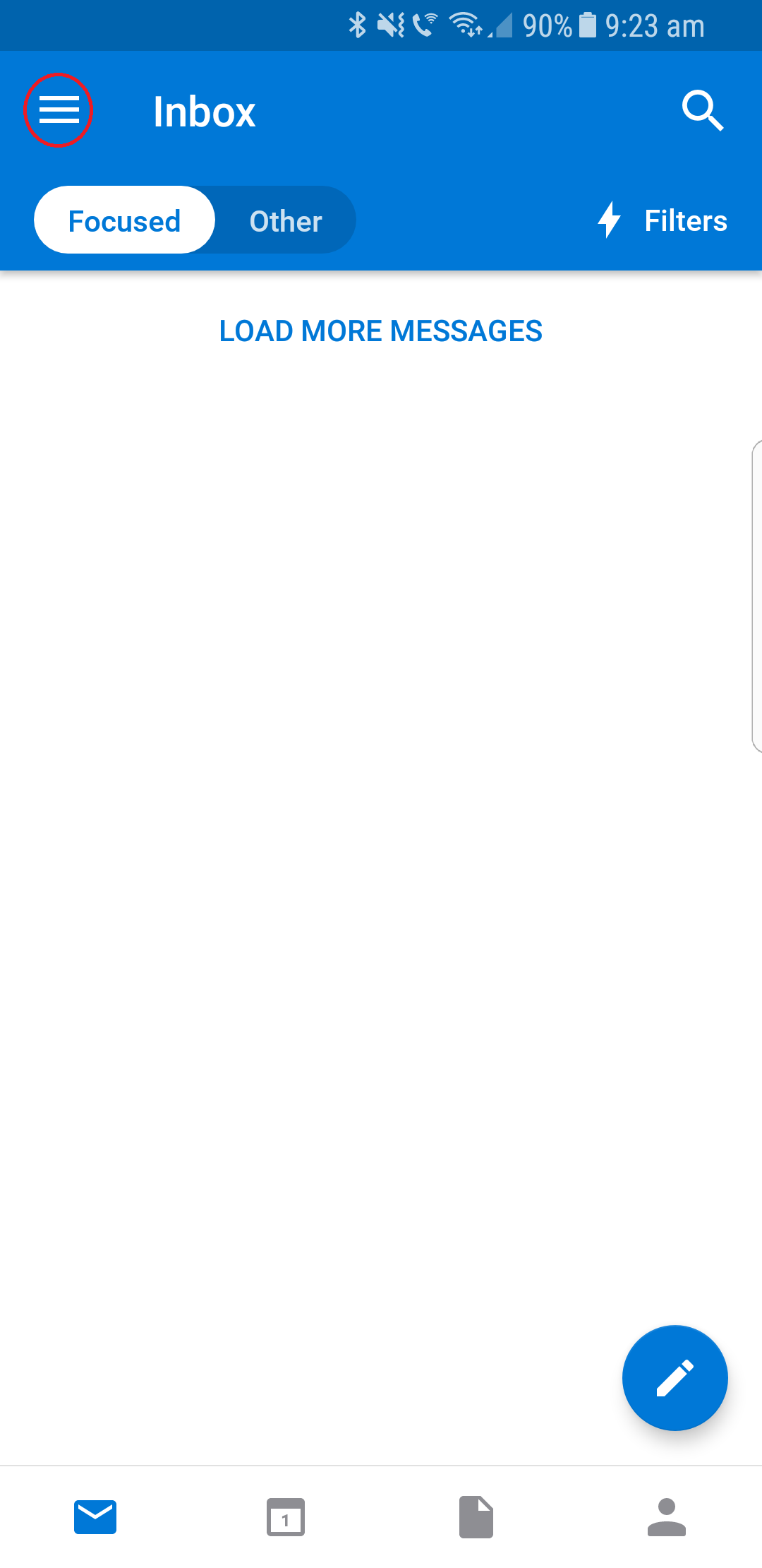 Below is a split screen of what Outlook will now look like, on the right is your main mail screen and if you left the circled menu button the menu will appear as shown on the left side of the screen. This will allow you access to your different mail accounts and folders.