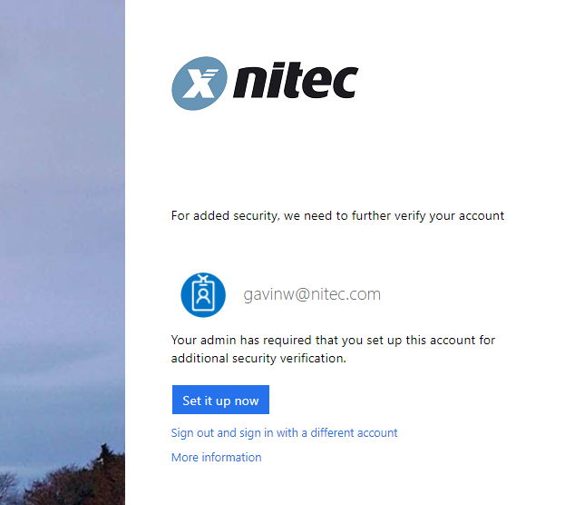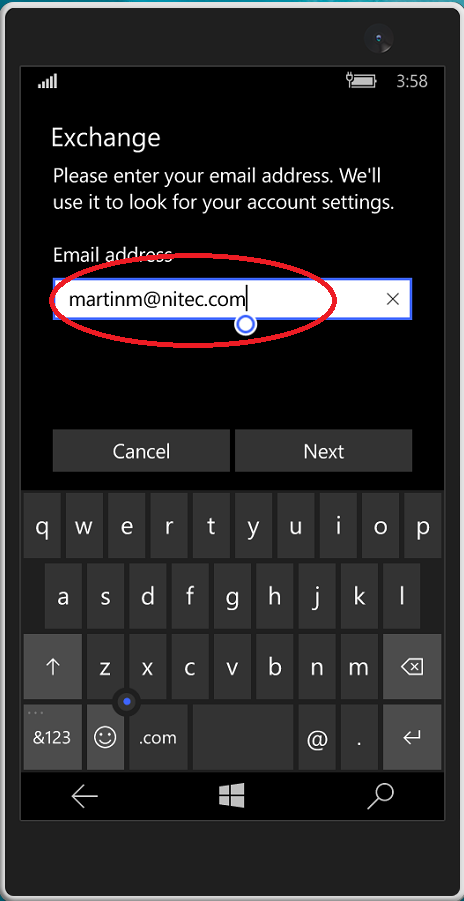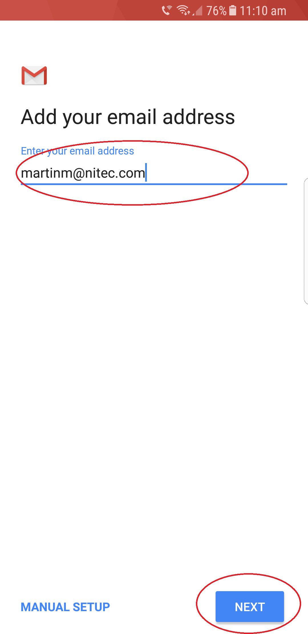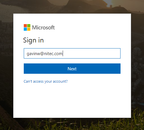 Enter your desired email address, as shown below where a Nitec email address has been entered