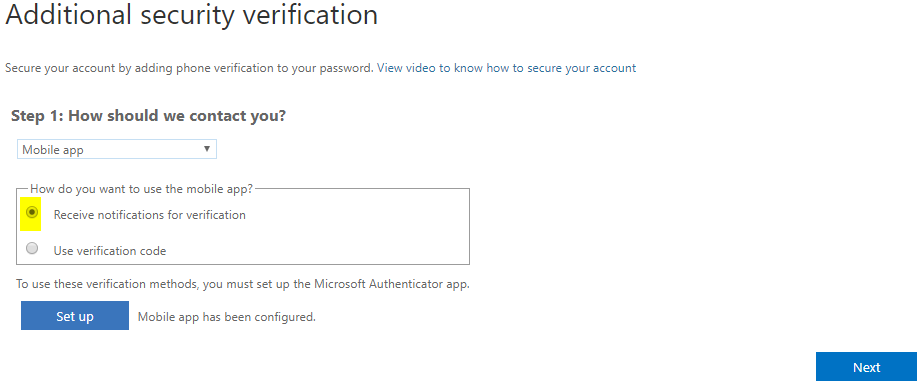 “Receive notifications” is simpler but the “use verification code” is slightly more secure. The choice is yours.