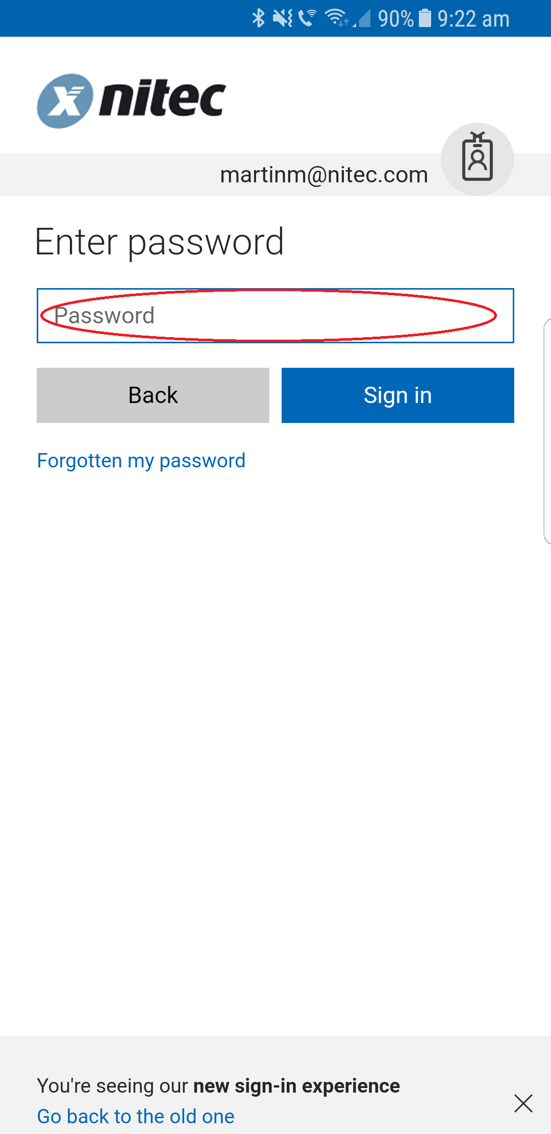 You now need to enter your App Password - This is different from your normal Office 365 password