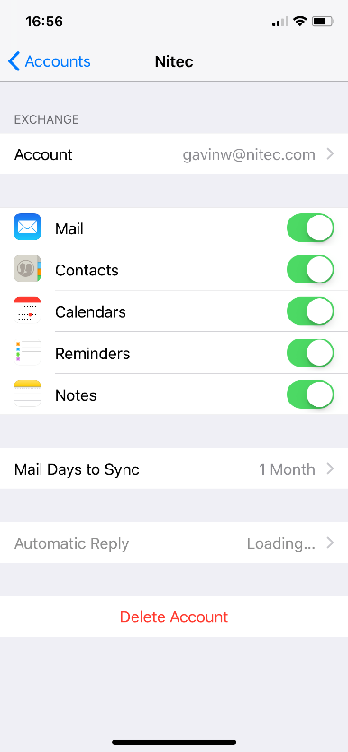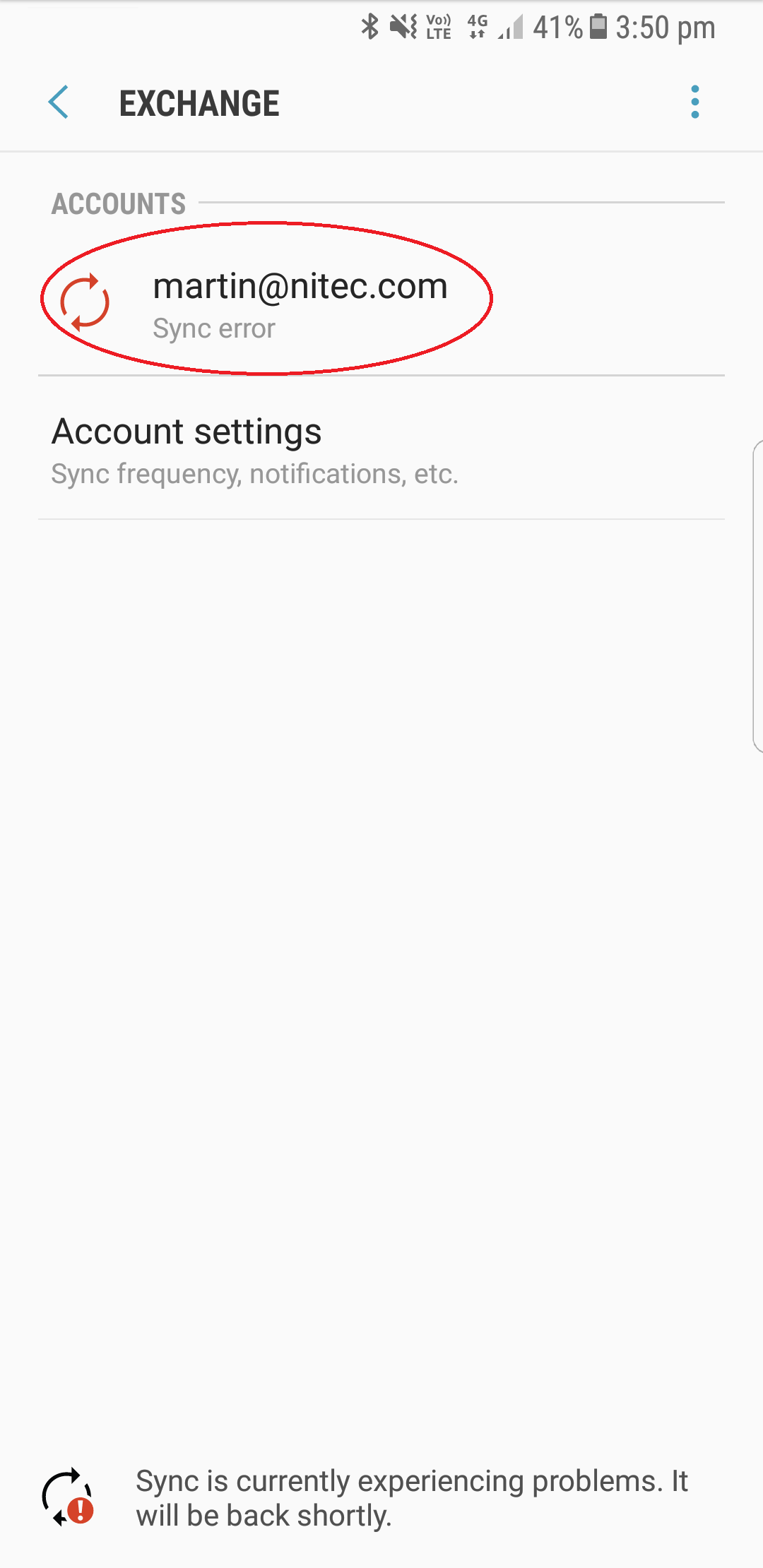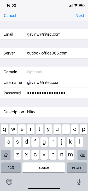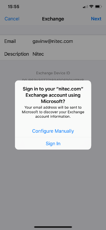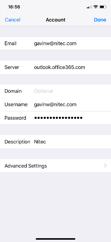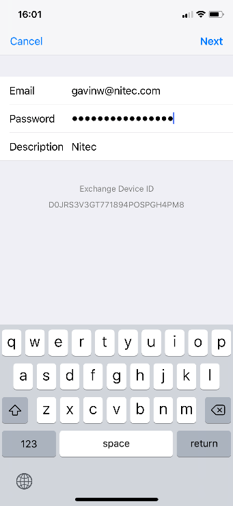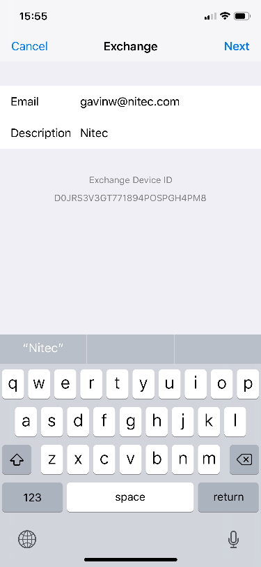 Now put in your primary email address. Some of you have a few so if you have issues make sure the one you are using is your primary. Change the description from exchange to something that means something. I’ve changed mine to Nitec.