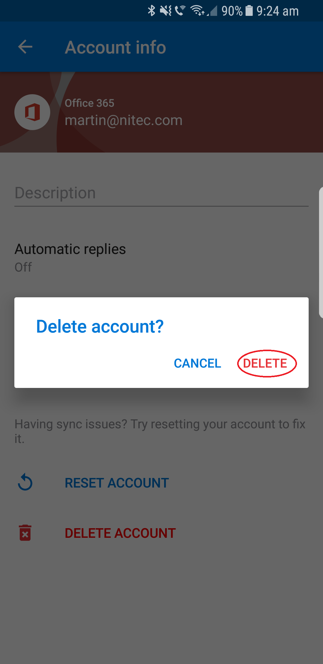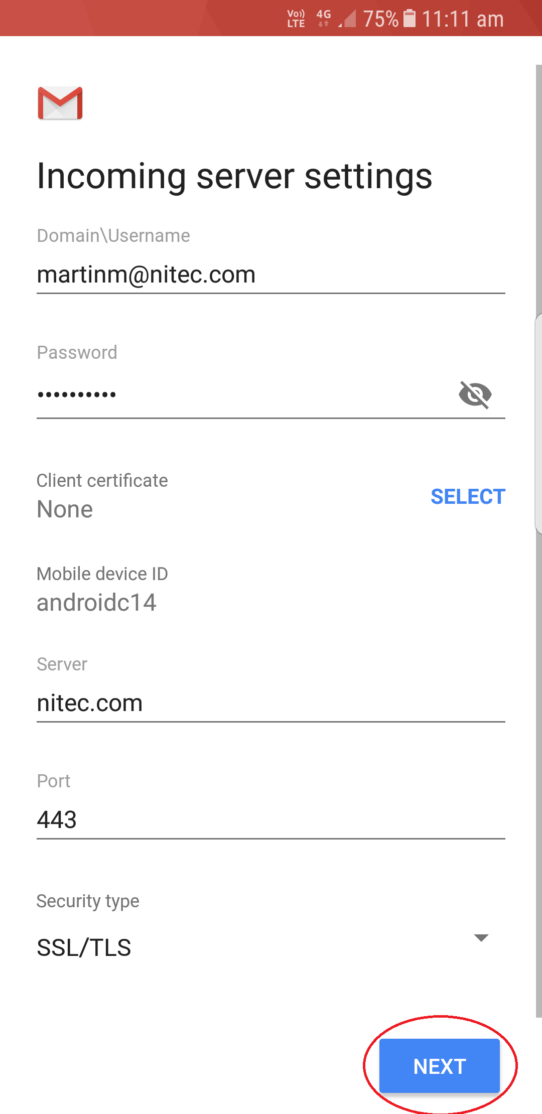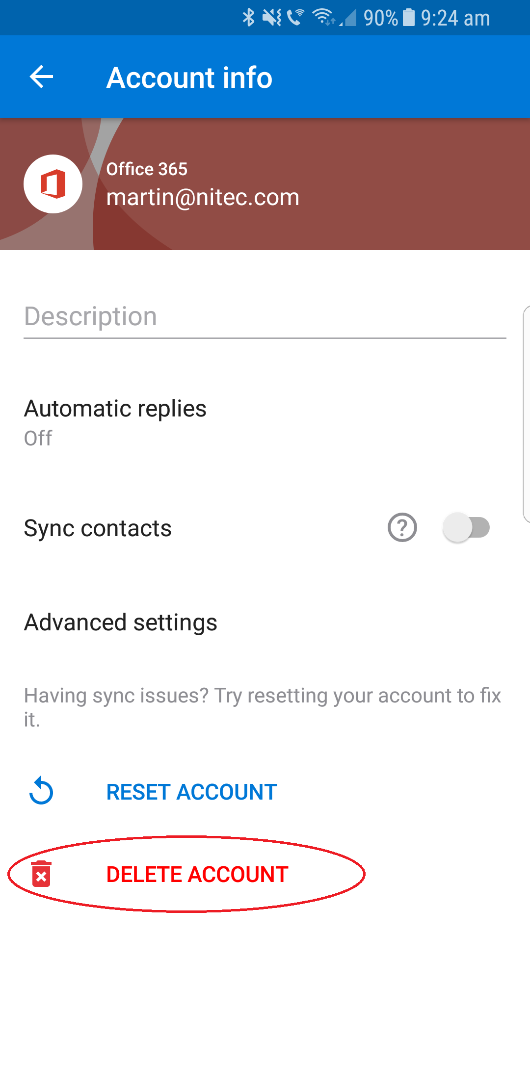 Now put in your primary email address. Some of you have a few so if you have issues make sure the one you are using is your primary. Change the description from exchange to something that means something. I’ve changed mine to Nitec.