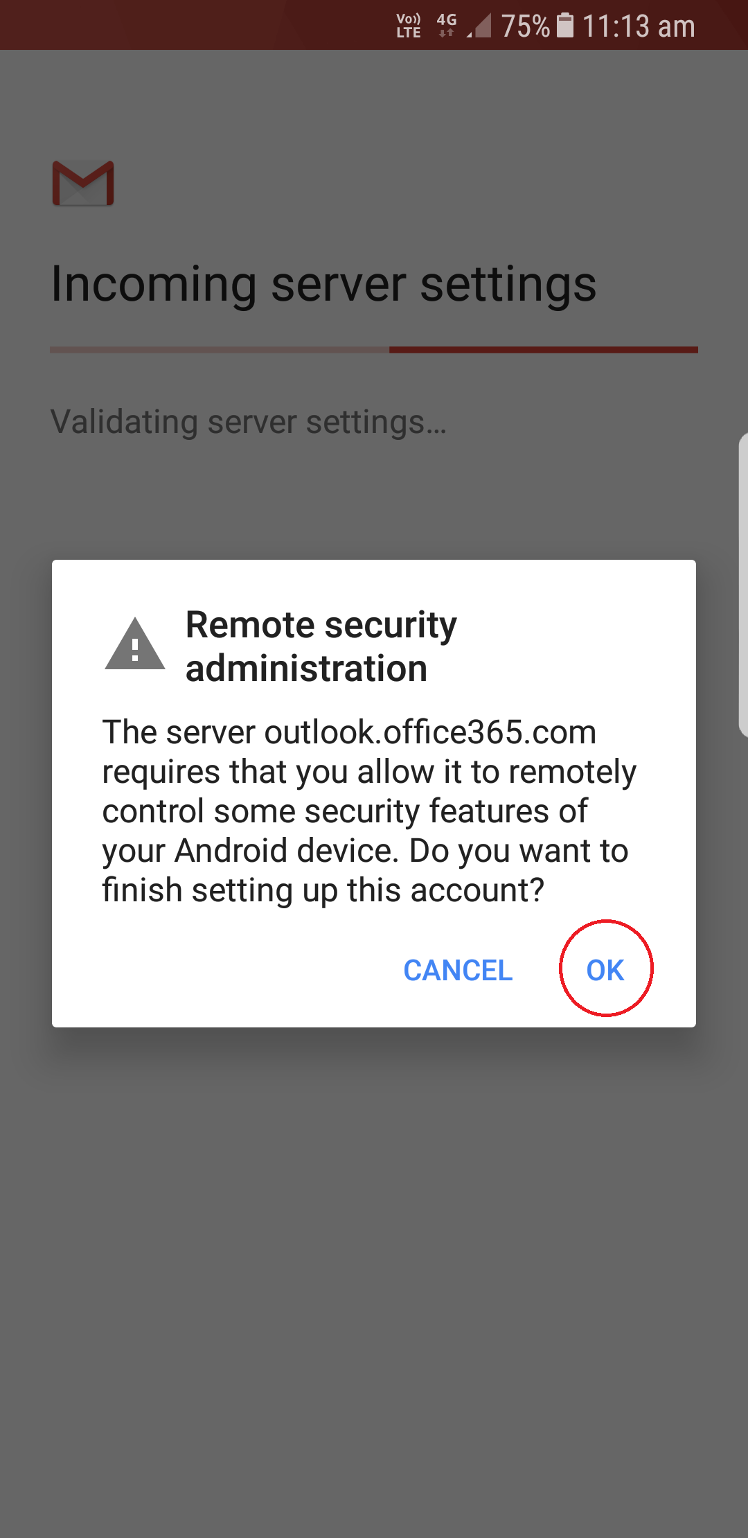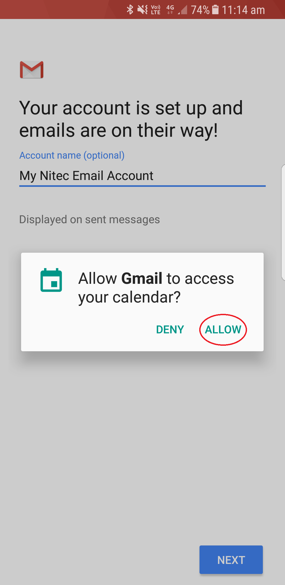 You may be asked if you want to 'Allow Gmail to access your Calendar' this will just allow for your outlook calender to be synced to your device